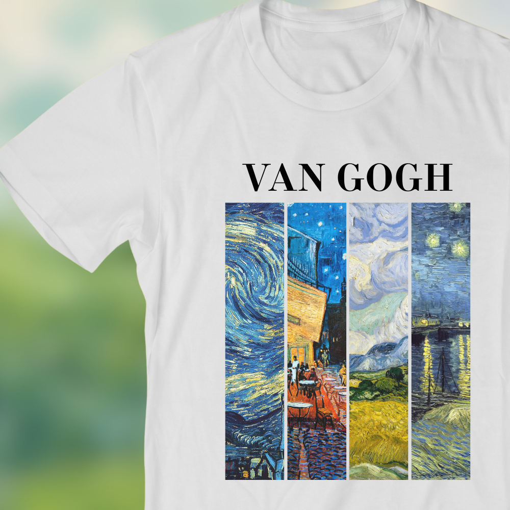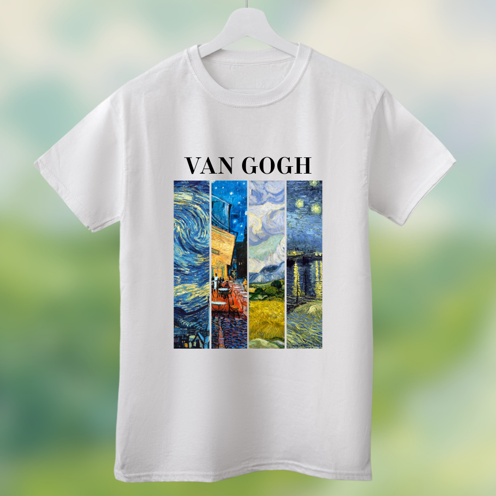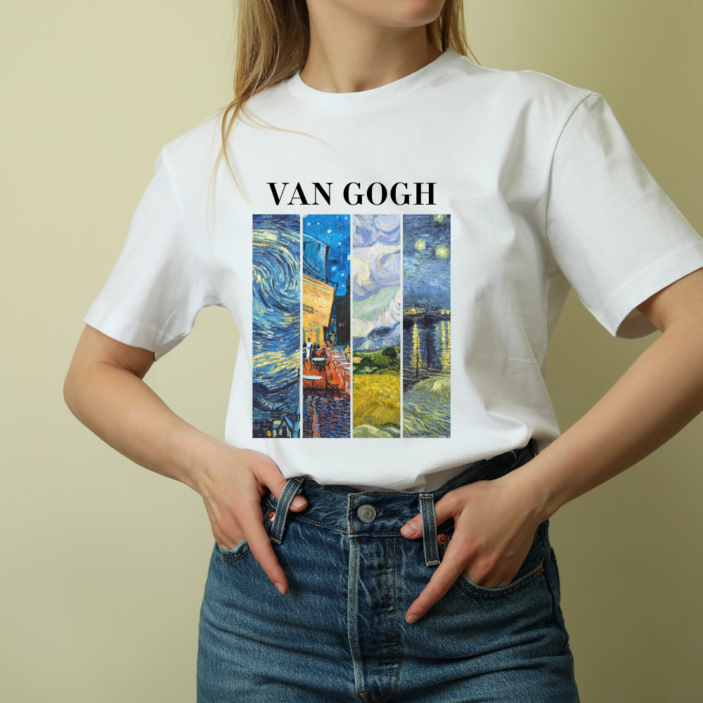 Blanca, en algodón suave, con estampado frontal que reúne sus obras más icónicas.